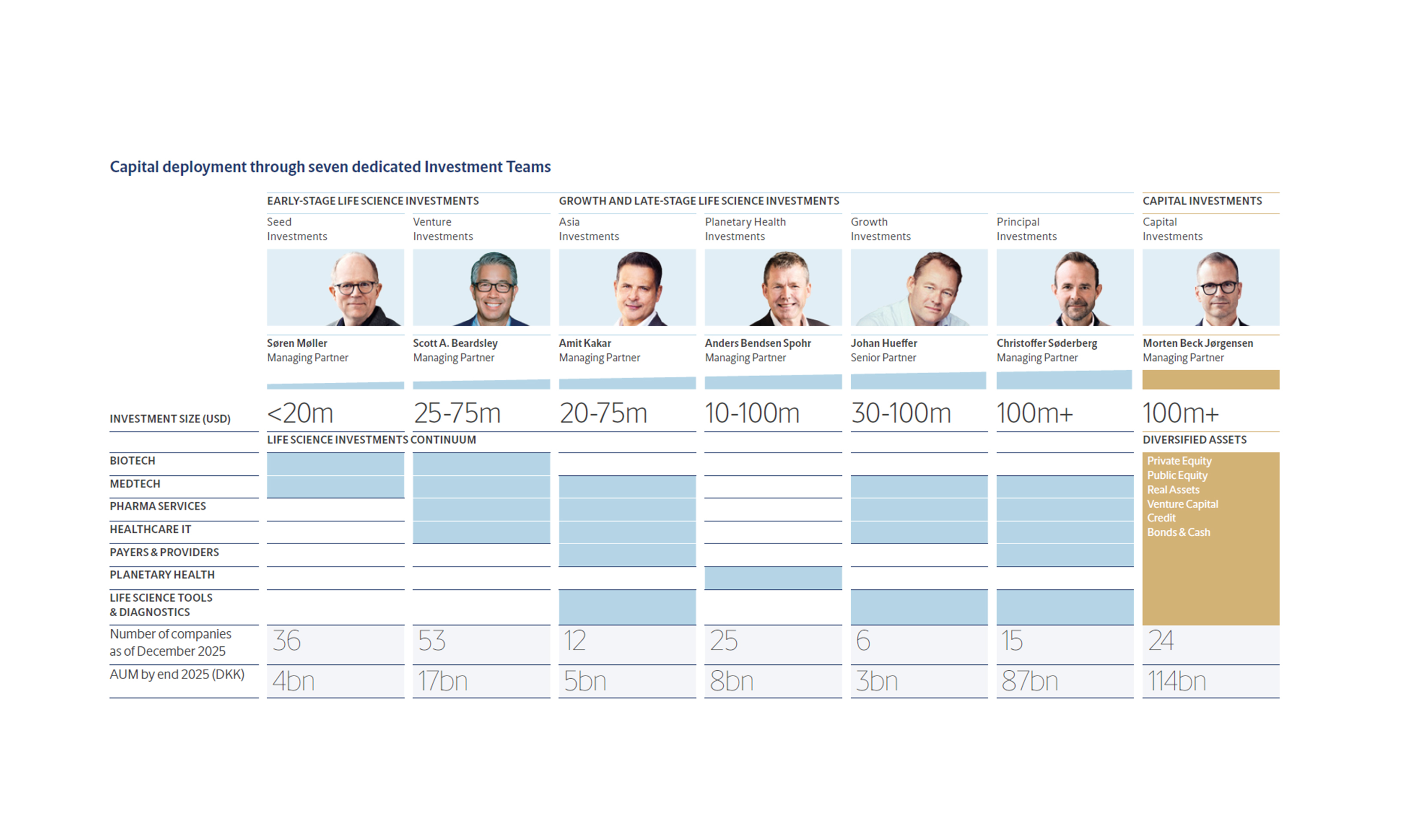 Novo Holdings’ global investment portfolio of life science investments is managed by a team of experienced investment professionals who run their investments entirely independently from Novo Nordisk and Novonesis.