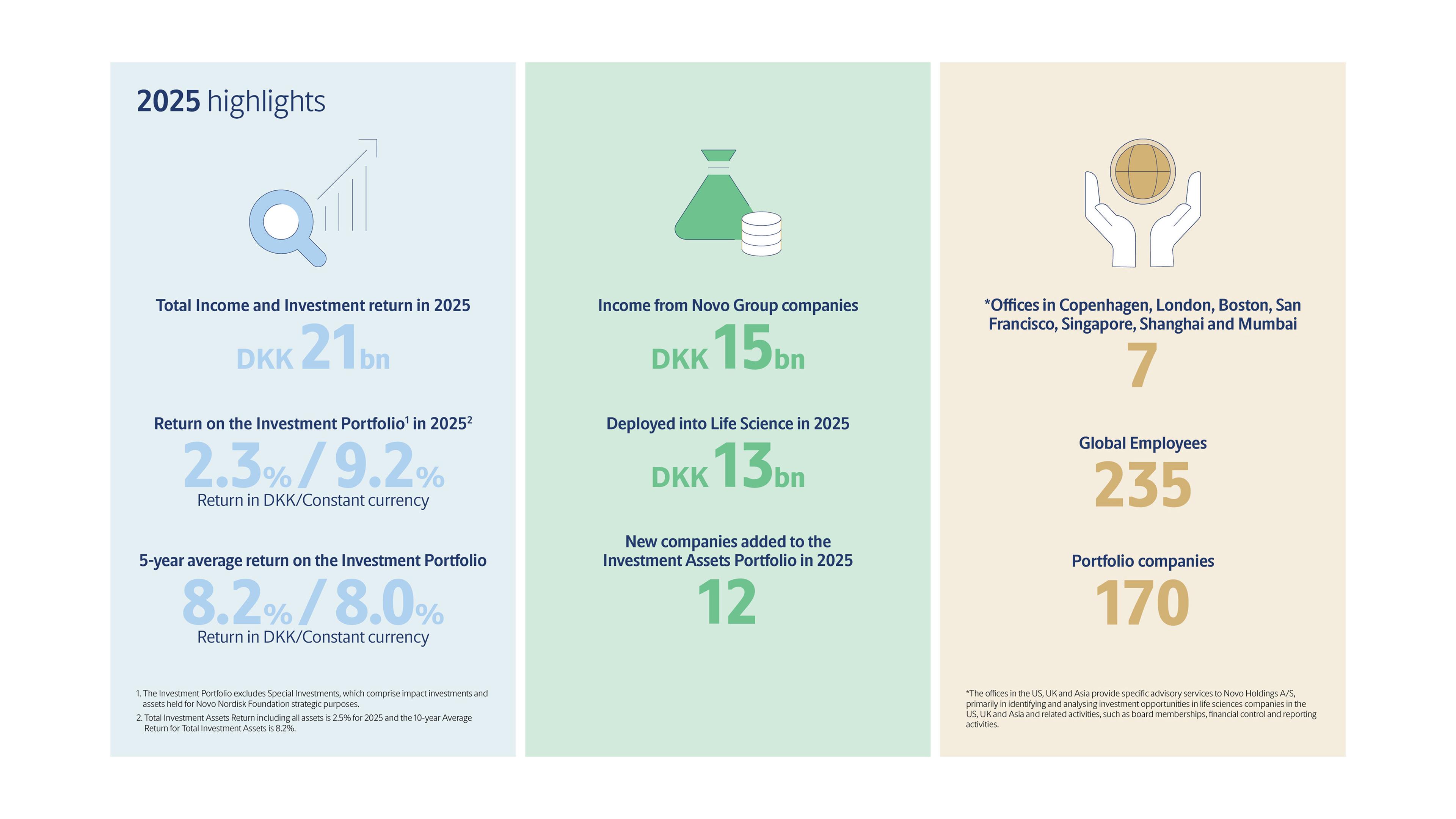 Novo Holdings’ investment portfolio also comprises capital investments. The capital investments portfolio includes equities, bonds, real estate and infrastructure assets as well as private equity investments.